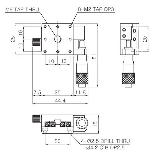 HJCX-25C 25×25mm Center ±3.25mm 10μm Crossed-Roller Guide 1kgf 30μm 10μm 0.04kg Aluminum Black Anodizing