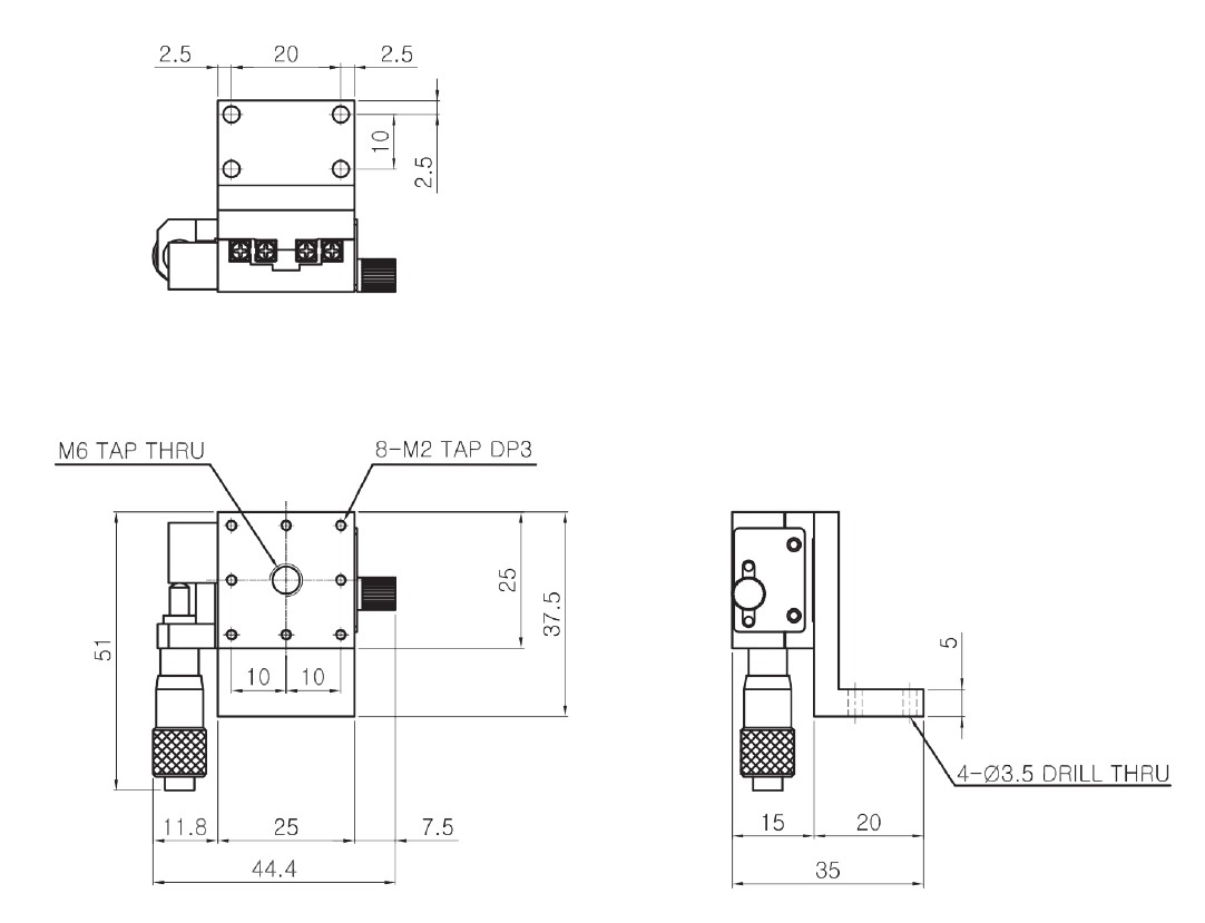 | HJCZ-25C | 25×25mm | Center | ±3.25mm | 10μm | Crossed-Roller Guide | 0.5kgf | 50μm | 20μm | 0.06kg | Aluminum | Black Anodizing |