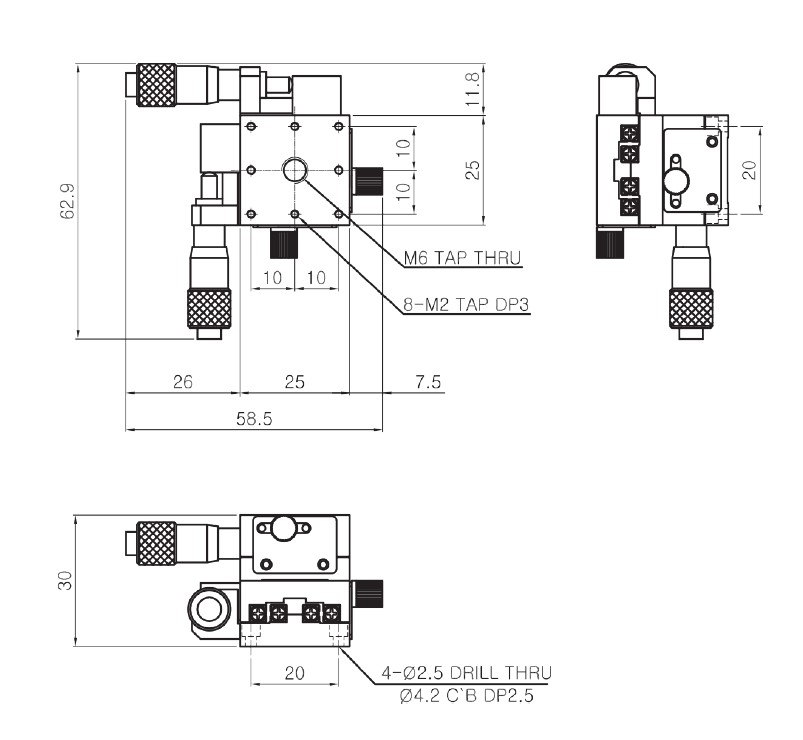| HJXY-25C | 25×25mm | Center | ±3.25mm | 10μm | Linear Ball Guide | 1kgf | 60μm | 20μm | 0.12kg | Steel | Electroless Nickel Plating |
