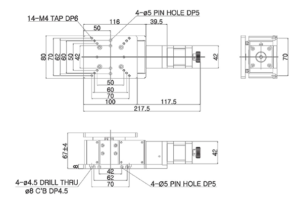 HJMHZ-60 60×88mm 4mm Crossed-Roller guide 2.5μm/pulse(Full step) 2.5mm/sec Ø8,