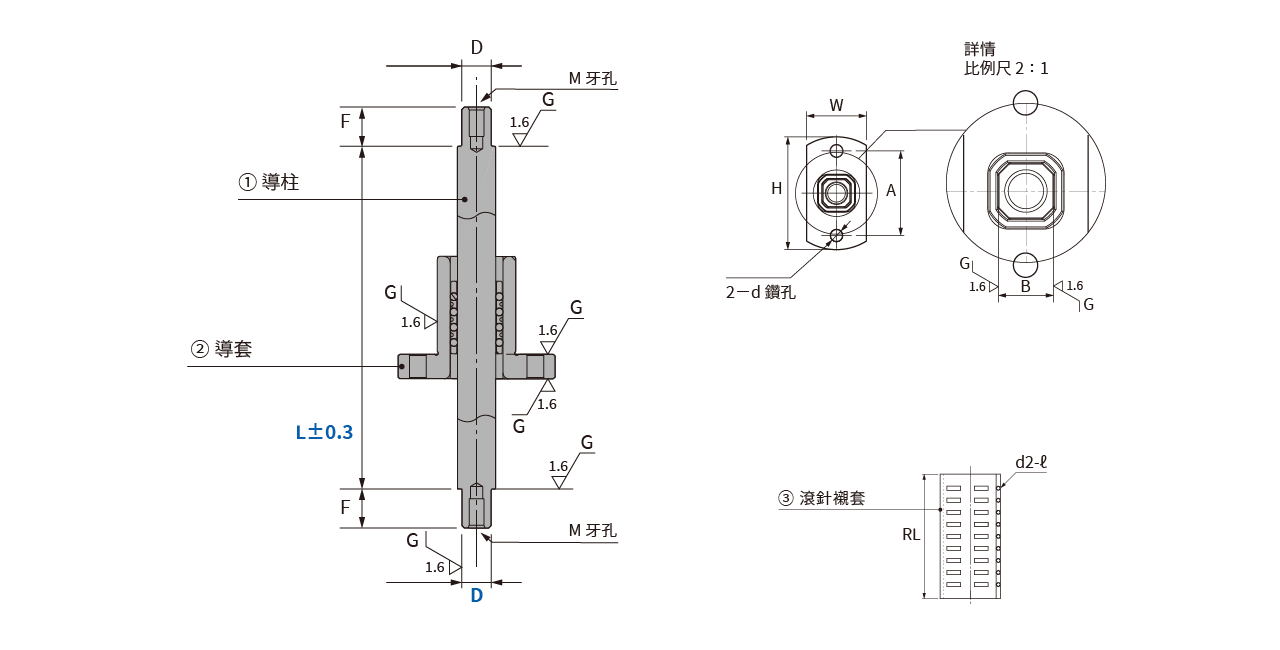 | 型號 | 導柱外徑 D | 導柱長度 L |