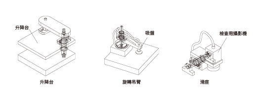檢查裝置、升降/滑座台、自動裝置、沖壓機、運送裝置等廣泛領域。 - 無需旋轉即可負荷扭矩,有效防止橫擺及俯仰現象的發生。