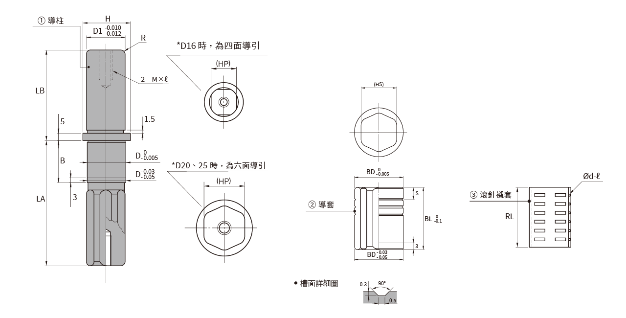 鋼球襯套用導套(SGBBW)或精密級無給油襯套(HWC002)。