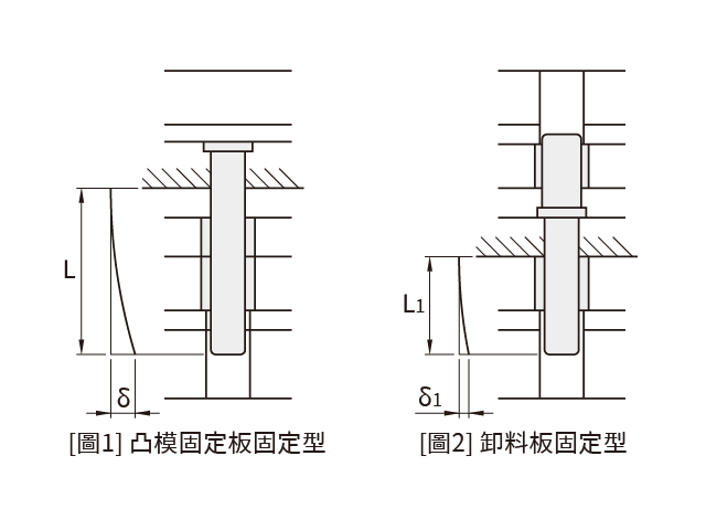 由於導柱的撓性與導柱長度的3次方成正比,因此長度越短的