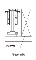 - 將平行基準塊放置在導柱側安裝板上,然後放上導套側安裝板, 對準安裝孔。