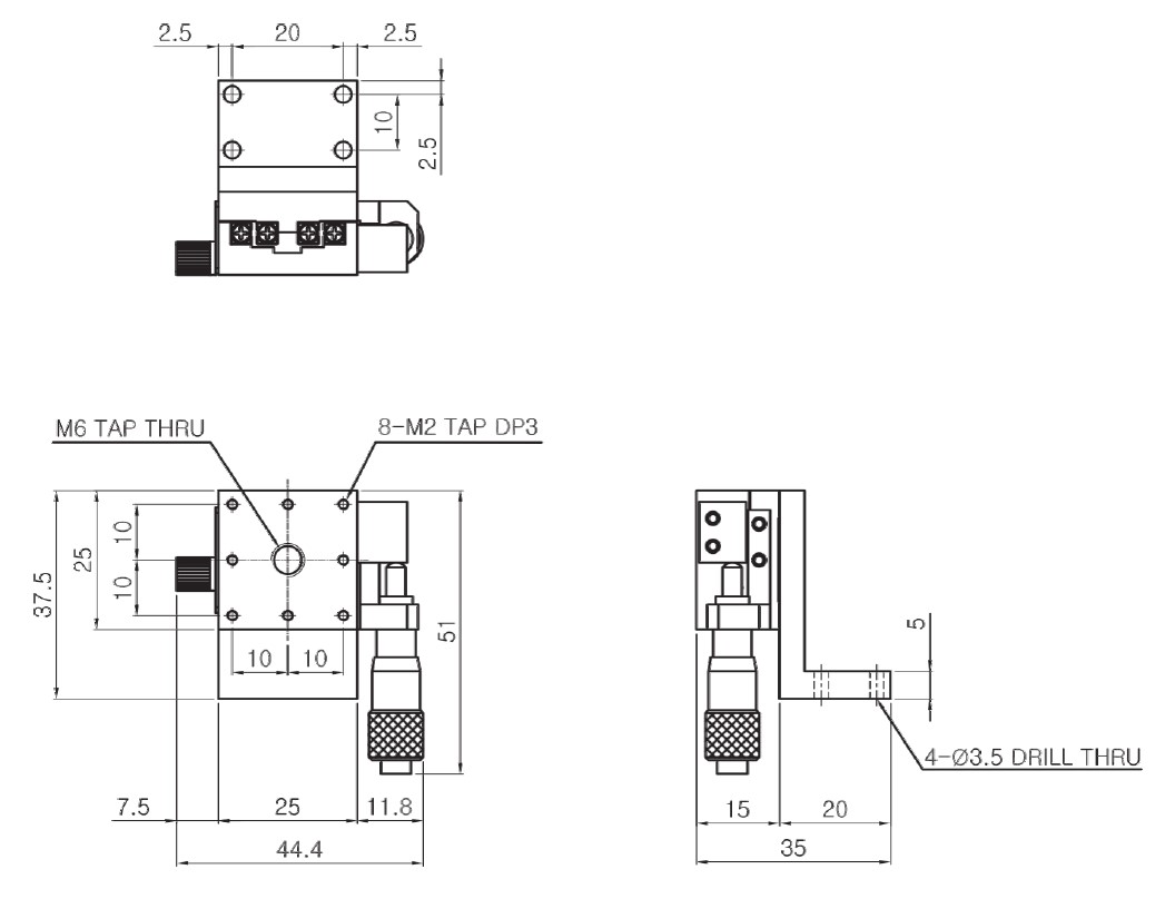 | HJCZ-25C | 25×25mm | Center | ±3.25mm | 10μm | Crossed-Roller Guide | 0.5kgf | 50μm | 20μm | 0.06kg | Aluminum | Black Anodizing |