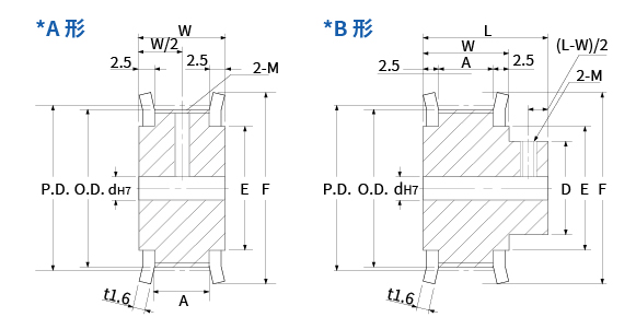 - 軸孔規格為 F 時,Z-F≥2,僅適用於 B 形