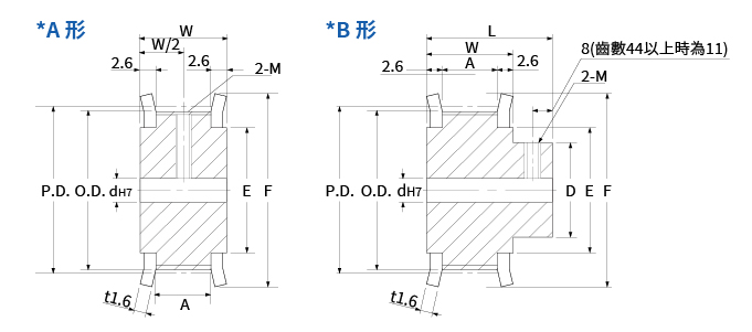 7. 軸孔規格為 F 時,Z-F≥2;僅適用於 B 形