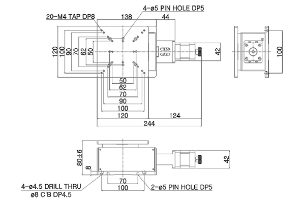 HJMHZ-120 120×120mm 12mm Crossed-Roller guide 0.72μm/pulse(Full step) 3.6mm/sec Ø8,