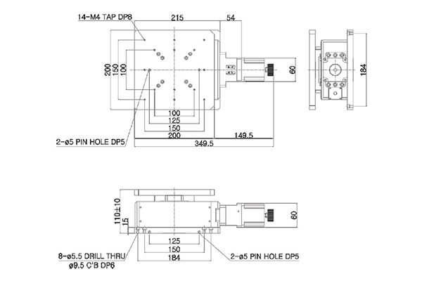 HJMHZ-200 200×200mm 20mm Crossed-Roller guide 3.6μm/pulse(Full step) 18mm/sec Ø12,