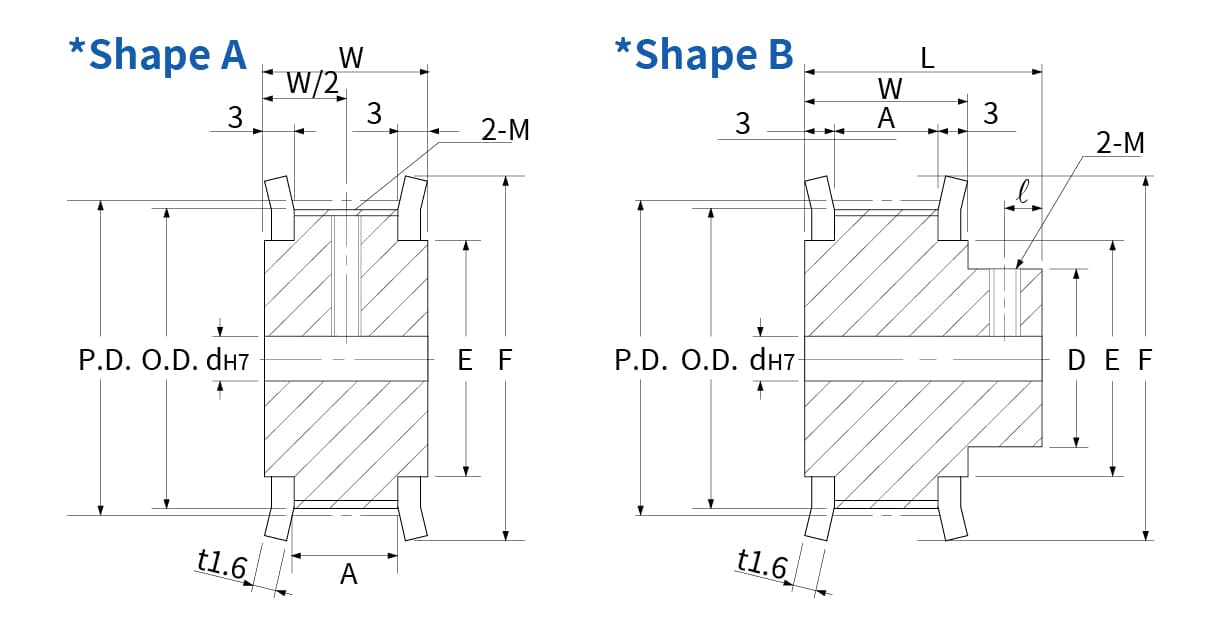- Z-F≥2 for F shaft hole specification; for B-shape only.