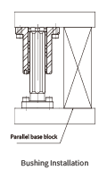 - Place the parallel base block on the plate of the post side, put the plate of the bush side on it and fit it to the installation hole.