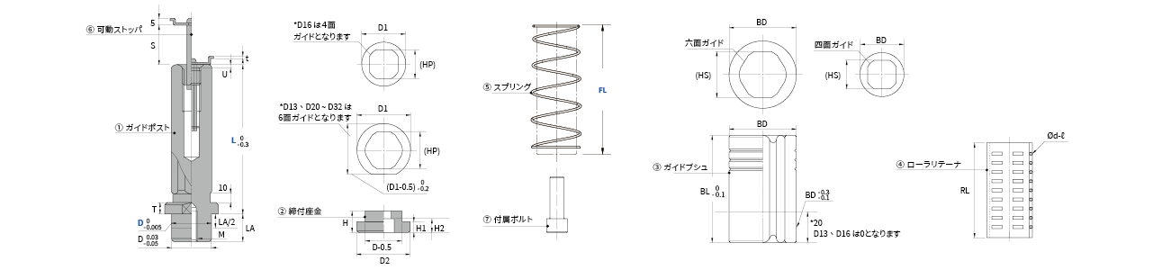 | D | ③ガイドブシュ | ④ローラリテーナ | |||||||
