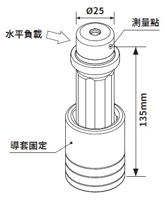 - 安裝高精密滾針型導柱組時,請注意不要在導柱與導套間產生轉動方向力矩。