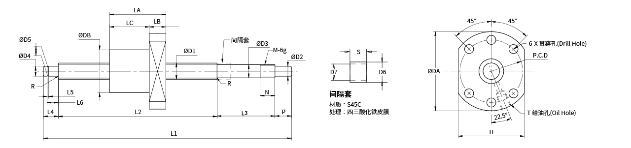 | D:双螺帽 | R:圆型 | C:端塞式标准型 | P1:无预压,无间隙 | F:转造 | L:左螺牙 | ||||||