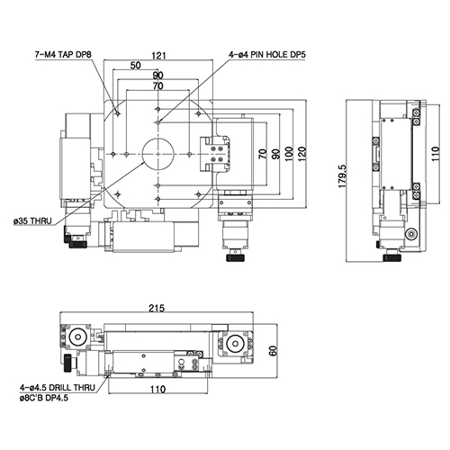 | HJMU-120 | 120×120mm | ±10/ ±10/ ±5° | Crossed-Roller guide, Cross Roller ring | 2μm(Full step) | 10mm/秒(基於5相馬達) | Ø8, lead 1(C5/C7) |