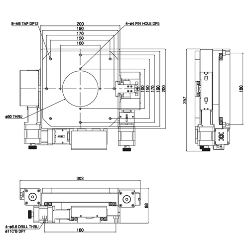 | HJMU-200 | 200×200mm | ±20/ ±20/ ±4° | Crossed-Roller guide, Cross Roller ring | 2μm(Full step) | 10mm/秒(基於5相馬達) | Ø8, lead 1(C5/C7) |