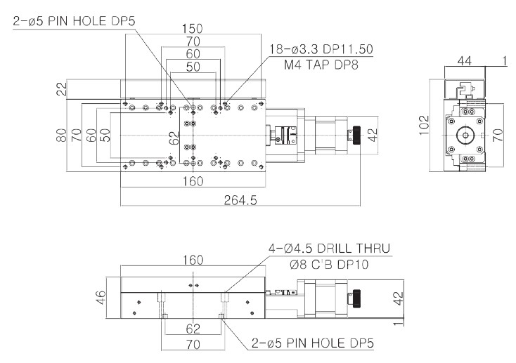 | HJMX-816 | 80×160mm | 100mm | Crossed-Roller guide | 2μm(Full step) | 10mm/秒(基於5相馬達) | Ø8, lead 1(C5/C7) |
